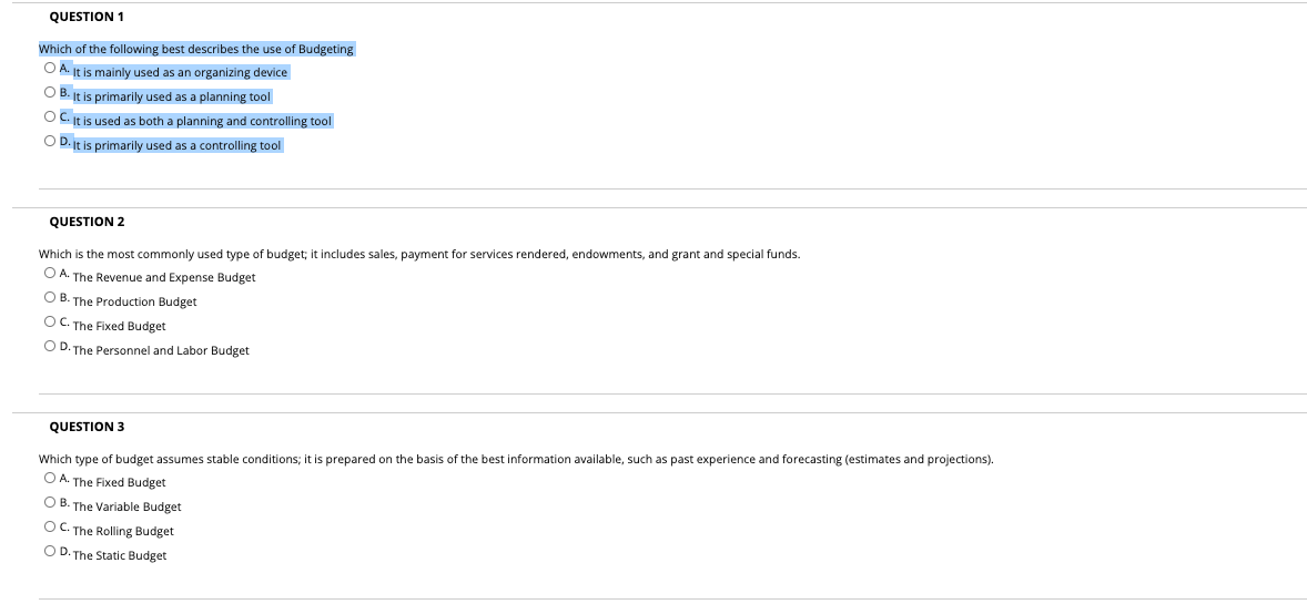 Solved Question 1 A Budget Is Best Described As A An Chegg Com
